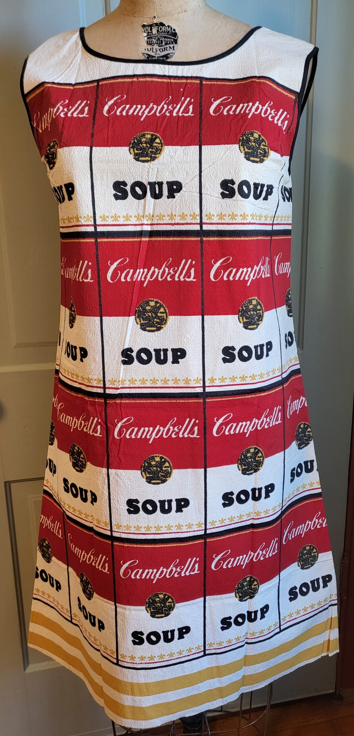 1968 Andy Warhol Campbell’s Soup pop art paper dress. Printed boldly with the iconic Andy Warhol design, together with the original envelope, care instructions, and additional Souper Dress order form. Unfortunately we no longer can send in soup labels for another one.